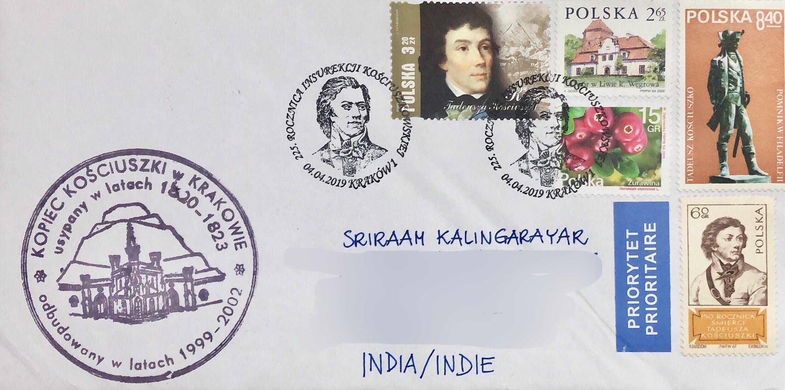 A postmark offered in Krakow postoffice to commomerate the 225th anniversary of Kosciusko uprising.